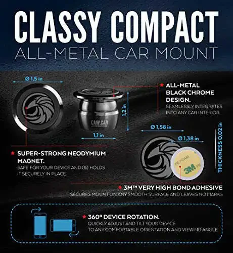 OUT AND OUT UNIVERSAL - we mean it, this car holder works with any size phones and can be installed in any car. Use it with up to 3 different devices (3 disks in set). Installation is easy as pie. ONE-HAND & ONE-SEC MOUNTING - just bring your phone to the mount and feel it securely lock into place. No clips or cradles, just the magic of the magnet. The mount provides 360˚ ROTATION AND VIEWING ANGLE FREEDOM. It’s handy and holds tight. ALL-METAL & LOOKS AWESOME - our small and stylish magnetic phone car mount looks awesome and performs even better. Thin metal disc can adorn your phone or hide under its case. +100 TO SAFENESS & COMFORT - this car phone holder keeps your device visible and near at hand on the dash. 28 US states prohibit windshield phone mounts and handheld phone talks. Protect yourself - get a phone mount for car dashboard KEEP PHONE HANDY & COPS HAPPY - if, for any reason, you don't absolutely love your new phone car holder, just contact us and we will make it right.