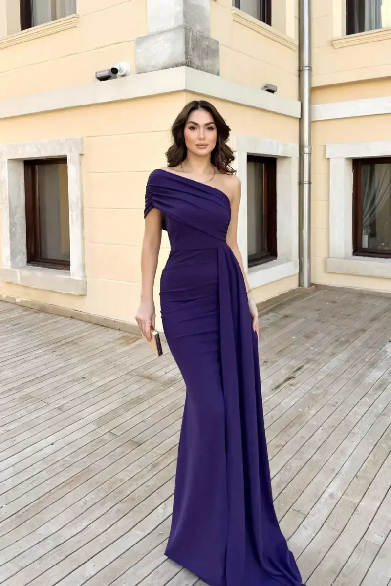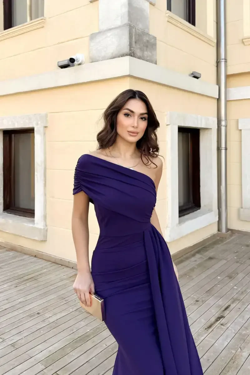 Ewo dumli bitta yelkali kechki libos - to'q binafsha rang, o'zining yosh va dinamik uslubini aks ettirmoqchi bo'lgan ayollar uchun maxsus ishlab chiqilgan. Bu ko'zni qamashtiruvchi kechki libos nafaqat kiyim, balki o'zini ifoda etish usuli hamdir. Sindimoda kafolati bilan taqdim etilgan ushbu maxsus dizayn, siz kirgan har qanday muhitda barcha e'tiborni o'zingizga qaratadi. To'q binafsha rangning olijanob ohangi kechki libosga nafislik baxsh etsa, dumli detal harakatlaringizga nafis suyuqlik qo'shadi. Baliq kesimi tana chiziqlaringizni mukammal tarzda ochib beradi va ayollik siluetingizni oldinga chiqaradi. Maxsus tadbirlardan tortib kokteyllargacha, to'ylardan unashtiruvlargacha har qanday maxsus tadbirda Ewo dumli bitta yelkali kechki libos bilan o'z uslubingizni namoyish qilishingiz mumkin. Kechki libosning bitta yelkali detali sizga zamonaviy va jasur ko'rinish berishga imkon bersa, qoplamasiz dizayni tufayli kun bo'yi o'zingizni qulay his qilasiz. Krep material yengil va nafas oladigan tuzilishi bilan teringizga muloyimlik bilan tegadi va harakat erkinligingizni cheklamaydi. To'rt faslda kiyiladigan bu kechki libos sizning garderobingizning ajralmas qismiga aylanadi. Ewo dumli bitta yelkali kechki libos bilan siz nafaqat chiroyli, balki o'ziga ishonchli va unutilmas taassurot qoldirasiz. Ushbu maxsus dizayn o'z uslubingizni aks ettirish va o'zingizni maxsus his qilishning eng yaxshi usuli.