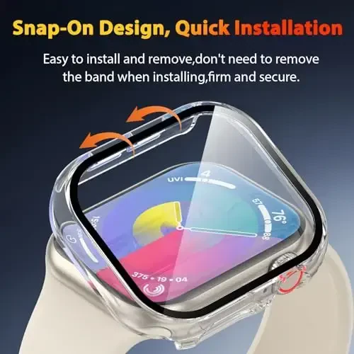 EWUONU 2 Pack Hard Case Compatible with Apple Watch Series 11 (2025) / Series 10 42mm Screen Protector. Tempered Glass Bumper Scratch Resistant HD Ultra Thin Protective Face Cover for iWatch Series 11/10 42mm, Clear. 【Compatibility】 This hard PC case with screen protector is compatible with Apple Watch Series 11/10 42mm. Please confirm your watch model and size before purchasing.【2 in 1 Design】 Hard PC case is integrated with durable tempered glass screen protector, providing full protection for not only the edges of your watch, but also the screen, against scratches, bumps and accidental drops. High transparency tempered glass maintains the original image quality and preserves the original touch sensitivity.【High Sensitive Touch】 The iWatch case with ultra-thin tempered glass screen protector preserves the clarity and sensitivity of the screen without affecting touch sensitivity.【Safe and Stable】 Advanced snap-on design, super easy to install, can be charged without removing the case.【What You Will Get】 2 x hard case for Apple Watch 42mm.