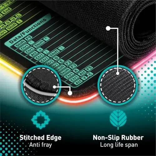 Make your workspace both fun and efficient with the Excel Shortcut Keys LED Mouse Pad! This extended and colorful RGB illuminated mouse pad is not just a mouse pad, but also a comprehensive reference source for Microsoft Excel users. With dimensions of 800x350x3mm, it provides ample space for both your laptop and mouse, while speeding up your workflow by bringing together frequently used shortcut keys in Excel. You can easily find what you're looking for thanks to the shortcuts categorized as navigation, selection, formatting, data/functions. RGB LED lighting adds vibrancy to your work or gaming experience and harmonizes with your other RGB equipment. It includes 10 different desk exercise diagrams to take a break during intense work. The humorous "Excel-lent at my job! I know my sheet." text on it adds joy to your work environment and offers a great gift option for Excel experts, colleagues, friends, or family. Thanks to its high-quality printing, the shortcut keys and other details retain their vibrancy for a long time. The non-slip natural rubber base keeps the mouse pad stable on the surface, while the stitched edges prevent fraying. The soft fabric surface makes your mouse movements more precise and fast, providing a flawless experience. It protects your desktop from scratches, impacts, and spills. Thanks to its easy-to-clean feature, you can keep it like new by wiping stains with a damp cloth or washing it with warm water and soap. Make your work easier and add color to your workspace with the Excel Shortcut Keys LED Mouse Pad!