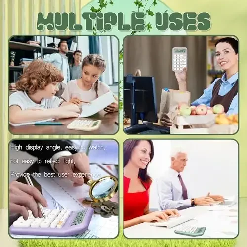 Exlliy Mechanical Switch Calculator is not just a calculator, but also an aesthetic object. This 10-digit calculator, which attracts attention with its purple color and large keys, combines modern design and functionality. With its typewriter-like simplicity and cute 3D keycaps, it will add a nice touch to your workspace or home. Designed to be used comfortably with one hand, this compact device is ideal for both desktop and handheld use. The square keys provide easy and effortless typing, while the springy ergonomics protect your wrists.Exlliy offers a fast and accurate typing experience by mimicking the click feeling of mechanical keyboards. The touch of your fingers and the unique click sound turn calculation into a pleasure. Large keys and candy colors combine ease of use and visual appeal. The wide LCD screen allows you to see the results clearly with its 10-digit display. The vertical back design and 15-degree angle make it easy to read the screen, so you can work for long periods without straining your eyes.Made of lightweight but durable ABS plastic, Exlliy offers an excellent tactile feel. It is equipped with features such as automatic shutdown, independent memory (M+, M-), total, clear and square root. Thanks to its anti-slip design with non-slip pads, it stays securely in place during use.The Exlliy calculator is the perfect tool to quickly meet your daily calculation needs in various environments such as schools, offices or homes. Offering a fast, efficient and user-friendly experience, it is an ideal choice for anyone looking for a reliable calculator. It is a stylish alternative that you can give to your loved ones with its gift box design. Thanks to its energy saving feature, it automatically turns off when not used for 10 minutes, extending battery life and ensuring long-lasting use.