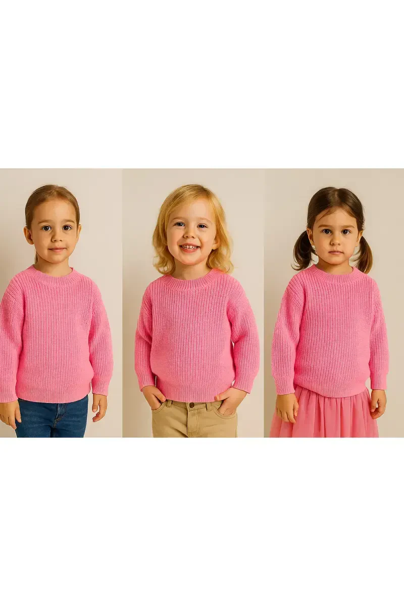 The Extra Flexible Crew Neck Unisex Baby & Kids Sweater (0-8 Years) - Pink, offered by Nimini Kids Boutique, is designed to add style and comfort to your little ones' wardrobe. This sweater is made with your baby's delicate skin in mind, and its flexible structure does not restrict freedom of movement, so your child can play and explore comfortably all day long. The honeycomb knit type increases the durability of the sweater and offers long-term use. This sweater, which will be indispensable for the winter season, prevents your baby from getting cold in cold weather thanks to its warming thickness. The elastic waistband makes dressing and undressing easy, while always prioritizing your baby's comfort. Thanks to its basic silhouette and plain pattern, it can be easily combined with all kinds of clothes and offers a timeless elegance. The medium-thick knit fabric stands out as an ideal option for seasonal transitions. Thanks to its unisex design, it is suitable for both girls and boys. This sweater, which comes in one piece, offers a modern and comfortable look with its beltless structure. Its extra soft texture gently wraps your baby's skin without irritating it. Suitable for daily use, this sweater allows you to have a pleasant time at home or outdoors. The long-sleeved design protects from the cold while maintaining its stylish look. Thanks to its acrylic material, it has easy care advantages and offers long-lasting use when washing instructions are followed. Being TR-origin reflects the quality of local production and allows you to support the local economy. With its crew neck, this sweater has modern lines and will appeal to mothers who follow trends.