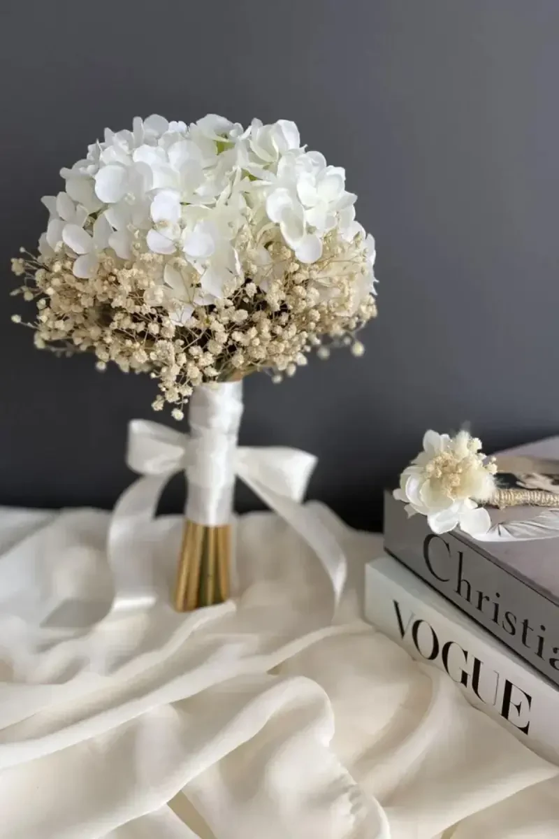 Eyaz Gortenziya To'y Gullari Yoqa Gullari 2-qismli to'plam yaqinlaringizga maxsus kunlarda sovg'a qilish uchun ham ajoyib tanlovdir. To'y uchun unutilmas sovg'a izlayotganlar uchun ideal tanlovdir.