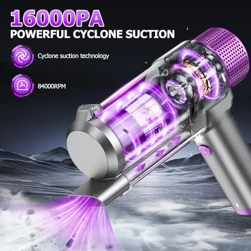 - 16000PA Powerful Suction: 120W high-power motor provides effective cleaning with 84000RPM motor speed.