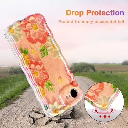 Compatible Model: This pretty oil painting flower floral design phone case compatible with iPhone 17e/iPhone 16e 6.1 inches ONLY; please check the phone model size carefully before purchasing; cute flower pattern printed by IMD, but Not 3D, without 3D touch Fashionable Glitter Flower: Beautiful Dazzling diamond like pearlescent floral design stands out, showing unique personality; fade resistant graphic print ensures long lasting glamorous gradient shimmer shine; admire this choice, bask in compliments Premium Material: Made of high quality thin soft TPU, protects the phone from scratches and falls; the frame of the case is smooth wave line, so it can better fit the palm and feel comfortable to hold; good grip feeling, easy to install and remove Reasonable Full Body Protection: Raised lip around camera offers protection for your phone from accidental scratches, fall and bumps, the case edge is slightly raised to protect the screen while light and soft flexible TPU material offers no bulky feel Slim and Precise Cutouts: The snug fit and precise cutouts give you easy access to the ports and buttons, microphone, camera and speaker; support wireless charging; ideal choice as a gift; minor color difference is normal due to the holographic craft with iridescent laser effect