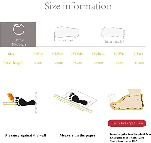 Since these sock shoes are not supported by a hard upper, they are easy to fall off when the shoe size is large. Please choose according to the actual length of your baby's feet when purchasing.