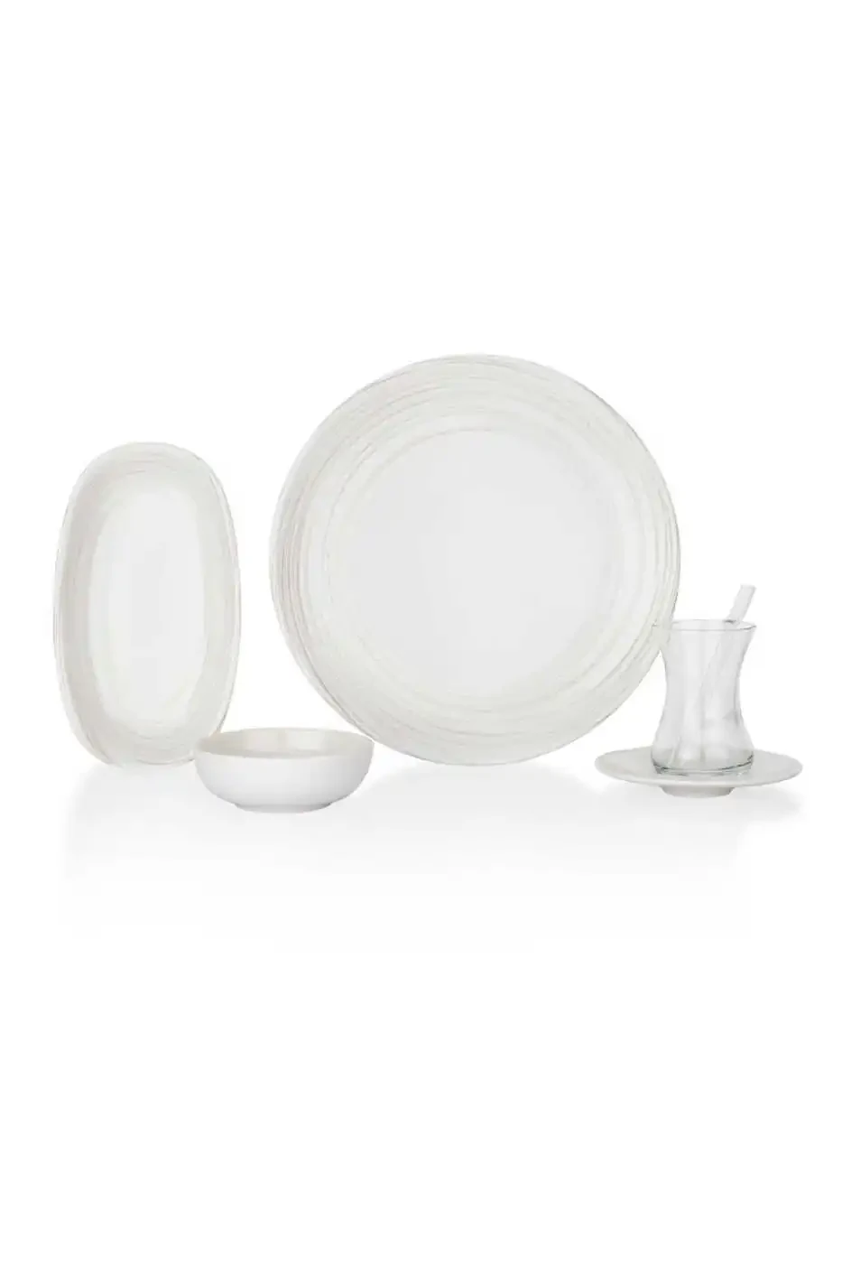 The Farina Breakfast Set, with its 32 pieces, offers a stylish and elegant option for your table. Its cream color design complements every taste and style, while its elegant patterns will make your table even more special.
