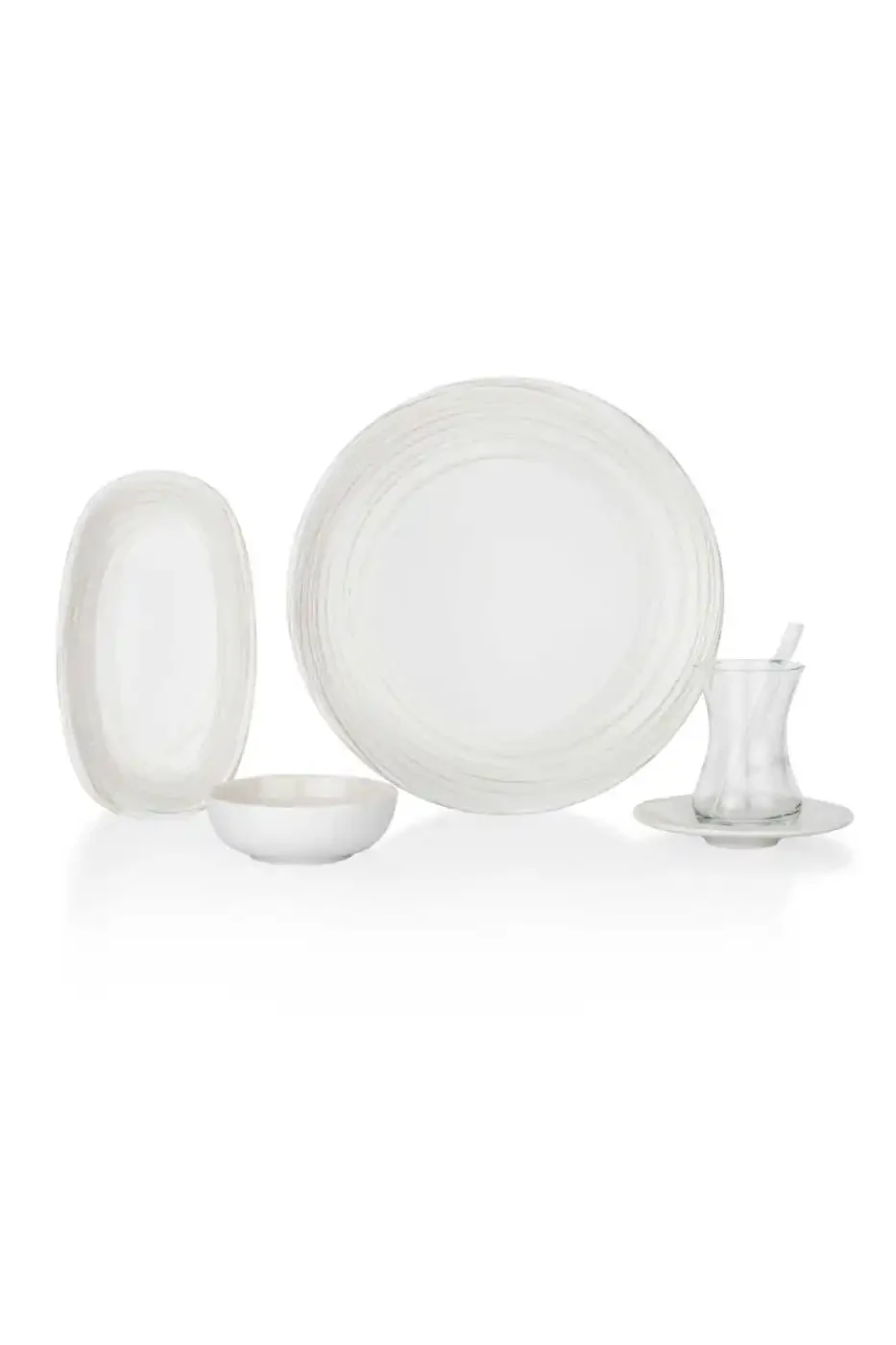 Farina Nonushta To'plami, 32 ta qismi bilan dasturxonlaringizga nafislik va jozibadorlik bag'ishlaydi. Krem rangli dizayni har qanday ta'mga va uslubga mos keladi, nafis naqshlari esa dasturxonlaringizni yanada o'ziga jalb qiladi.
