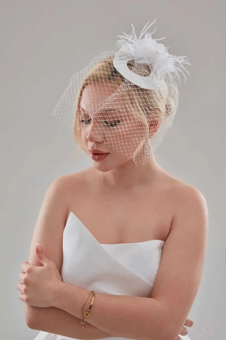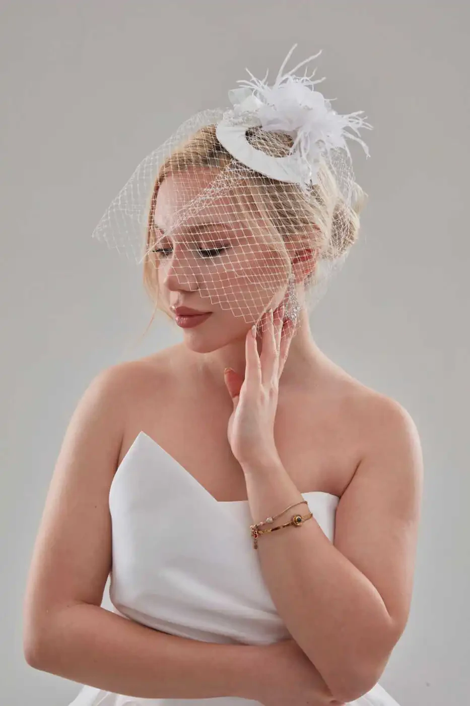 Эта свадебная шляпка станет прекрасным дополнением к вашему свадебному платью и сделает вас незабываемой в этот самый особенный день. Ее простота и изящество покорят сердце каждой невесты. Закажите сейчас и сияйте красотой на своей свадьбе!