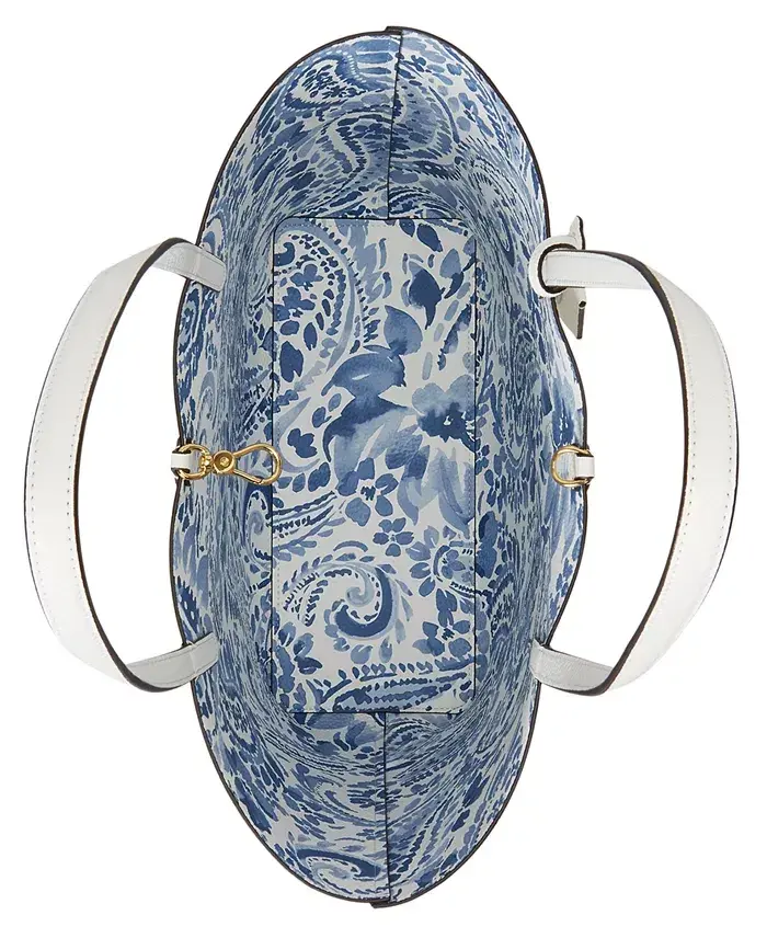 Faux-Leather Large Reversible Tote Bag - White/Floral