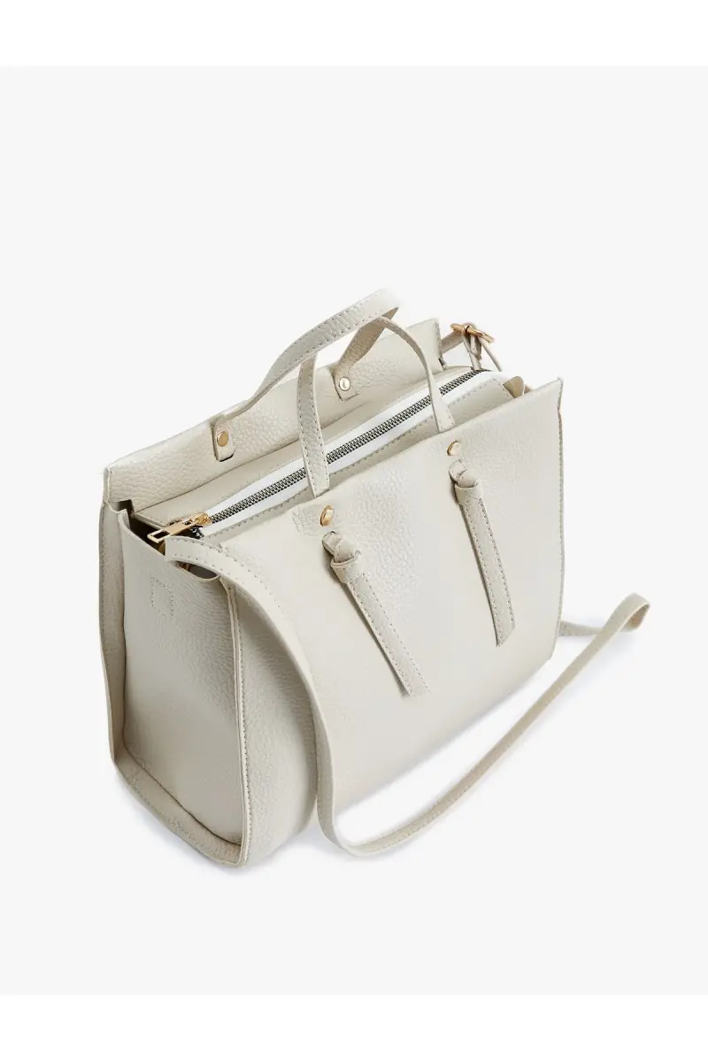 Elegance and practicality come together in the Faux Leather Tote Bag, with its large size and handle strap detail, it is a candidate to become an indispensable part of your daily life. This bag, which meets the needs of the modern woman, will both complement your style and allow you to carry your belongings safely.Product DescriptionThe Faux Leather Tote Bag is made of high-quality faux leather material. Thanks to this, it offers both a stylish look and long-lasting use. Thanks to its large size, you can easily carry many of your belongings, from your books to your tablet, from your make-up materials to your snacks. The handle strap detail makes it easy to carry the bag on your shoulder or by hand and offers comfort throughout the day. The useful compartments inside the bag help you organize your belongings, while the zippered inner pocket allows you to safely store your valuables. The Faux Leather Tote Bag is a stylish and practical option to accompany you in business life, shopping, travel or daily use. This bag, which can adapt to any style with its different color options, will be an indispensable part of your wardrobe. The modern and minimalist design of the bag can be easily combined with any outfit and adds a sophisticated touch to your style. This bag, which will complete your elegance on your special days as well as daily use, is also a perfect gift option for your loved ones. The Faux Leather Tote Bag, which you can use for many years thanks to its durable structure, is both budget-friendly and environmentally conscious. Feel special in every moment with this bag that offers elegance, usability and durability together. Whether you create a stylish combination while going to the office or catch comfort on your weekend trips, the Faux Leather Tote Bag will always be with you. This bag is an ideal choice to pamper yourself or give an unforgettable gift to your loved ones. Reflect your style with the Faux Leather Tote Bag and attract attention in every environment. Remember, elegance is hidden in the details and this bag is the perfect detail to complete your style.Product Features* High quality faux leather material* Large size design* Handled strap detail* Useful interior compartments* Zippered inner pocket* Different color options* Modern and minimalist design* Durable constructionAdditional InformationThe bag can be easily cleaned with a damp cloth. Avoid exposure to direct sunlight. Regular maintenance is recommended for long-lasting use. The product is manufactured in Turkey.