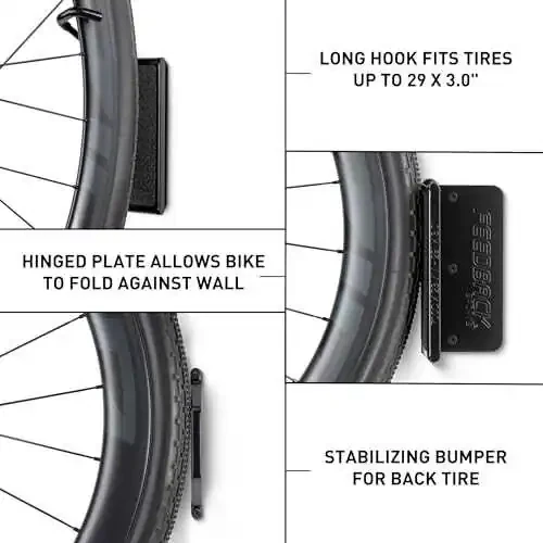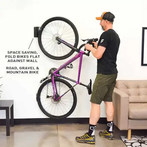 Thanks to the Velo Hinge 2.0's unique pivoting mechanism, you can hang your bikes parallel to the wall, saving space. You can also easily rotate your bikes and view them from different angles. Its durable steel construction provides excellent support for even heavy bikes and offers years of trouble-free use.