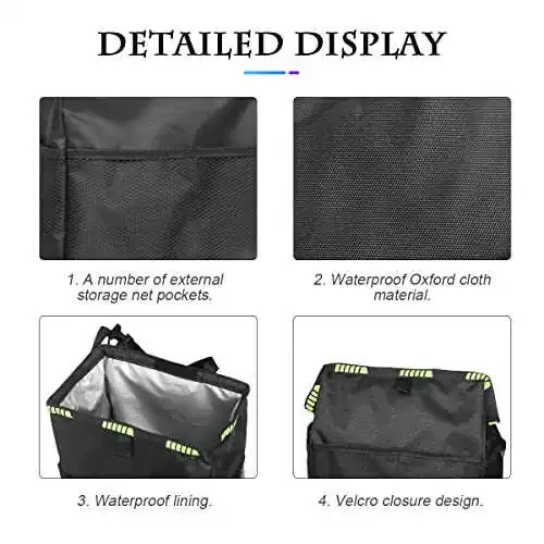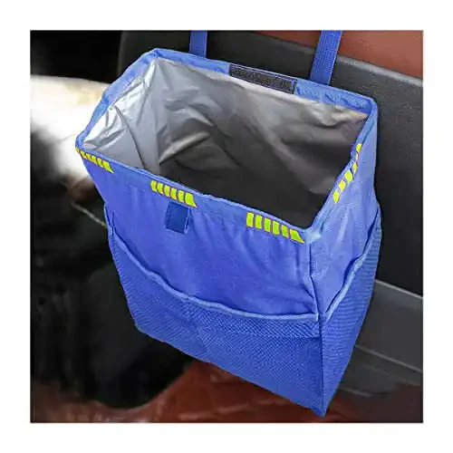 【Waterproof Oxford Material】: Our car organizer is made of waterproof and leak-proof double-layer oxford cloth. It can hold dry and wet garbage, and you never have to worry about liquid spills again. All in one cooler bag, organizer bag or waste basket, and it is handy and convenient way to stay organized while traveling or vacationing. 【6 External Pockets】: The outside of our car garbage bag is also designed with 6 mesh storage bags, which allows you to store some daily necessities and keep your car clean and organized. This is perfect for families with children or pets, and we believe you will need this storage bag. 【Hanging Design】: It is very easy to install. Just hang it from the headrest, gearbox or console box in the back seat and adjust the straps to the right length. If you no longer use it, you can fold it completely and it will take up less space. The best part? Our car trash can be erected and folded, allows you to place it in the trunk or under the seat when not in use. 【Sealed with Velcro】: The opening of this car storage bag has a high adhesive Velcro so that you can seal the garbage bag. You will no longer have to worry about the nasty smell of garbage in your bag, making your driving much more enjoyable! This eco-friendly car trash bag can be given as a gift to your family or friends and it will be a very happy thing to have it! 【Multi-Purpose】: Our car trash bag are perfect for every type of vehicle, perfectly fits a variety of types including sedans, SUV, truckers, etc. This car garbage bag is not only a car garbage cans, but also worked as a storage bag to store some gadgets, picnic travel snacks, preventing lose, useful for outdoor camping, climbing, travelling, etc.