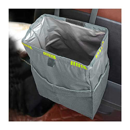 Fekey&JF Hanging Car Trash Can with Storage Pockets, Waterproof Leakproof Oxford Auto Garbage Bag, Multi-Use Organizer for Outdoor Traveling, Foldable Trash Bin for Truck, SUV, Home, Office (Gray)