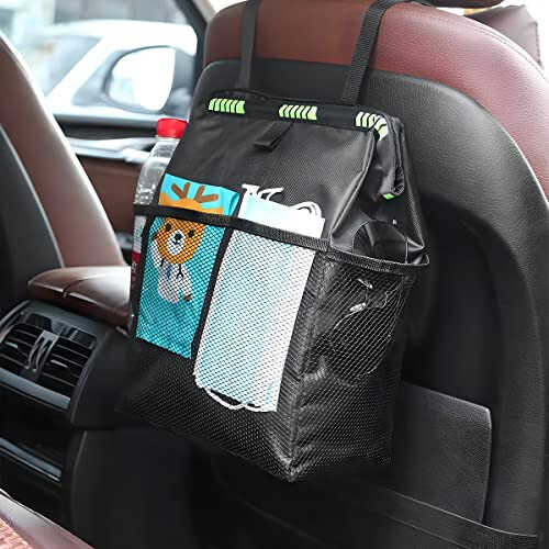 【Waterproof Oxford Material】: Our car organizer is made of waterproof and leak-proof double-layer oxford cloth. It can hold dry and wet garbage, and you never have to worry about liquid spills again. All in one cooler bag, organizer bag or waste basket, and it is handy and convenient way to stay organized while traveling or vacationing. 【6 External Pockets】: The outside of our car garbage bag is also designed with 6 mesh storage bags, which allows you to store some daily necessities and keep your car clean and organized. This is perfect for families with children or pets, and we believe you will need this storage bag. 【Hanging Design】: It is very easy to install. Just hang it from the headrest, gearbox or console box in the back seat and adjust the straps to the right length. If you no longer use it, you can fold it completely and it will take up less space. The best part? Our car trash can be erected and folded, allows you to place it in the trunk or under the seat when not in use. 【Sealed with Velcro】: The opening of this car storage bag has a high adhesive Velcro so that you can seal the garbage bag. You will no longer have to worry about the nasty smell of garbage in your bag, making your driving much more enjoyable! This eco-friendly car trash bag can be given as a gift to your family or friends and it will be a very happy thing to have it! 【Multi-Purpose】: Our car trash bag are perfect for every type of vehicle, perfectly fits a variety of types including sedans, SUV, truckers, etc. This car garbage bag is not only a car garbage cans, but also worked as a storage bag to store some gadgets, picnic travel snacks, preventing lose, useful for outdoor camping, climbing, travelling, etc.