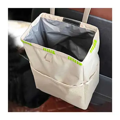 【Waterproof Oxford Material】: Our car organizer is made of waterproof and leak-proof double-layer oxford cloth. It can hold dry and wet garbage, and you never have to worry about liquid spills again. All in one cooler bag, organizer bag or waste basket, and it is handy and convenient way to stay organized while traveling or vacationing. 【6 External Pockets】: The outside of our car garbage bag is also designed with 6 mesh storage bags, which allows you to store some daily necessities and keep your car clean and organized. This is perfect for families with children or pets, and we believe you will need this storage bag. 【Hanging Design】: It is very easy to install. Just hang it from the headrest, gearbox or console box in the back seat and adjust the straps to the right length. If you no longer use it, you can fold it completely and it will take up less space. The best part? Our car trash can be erected and folded, allows you to place it in the trunk or under the seat when not in use. 【Sealed with Velcro】: The opening of this car storage bag has a high adhesive Velcro so that you can seal the garbage bag. You will no longer have to worry about the nasty smell of garbage in your bag, making your driving much more enjoyable! This eco-friendly car trash bag can be given as a gift to your family or friends and it will be a very happy thing to have it! 【Multi-Purpose】: Our car trash bag are perfect for every type of vehicle, perfectly fits a variety of types including sedans, SUV, truckers, etc. This car garbage bag is not only a car garbage cans, but also worked as a storage bag to store some gadgets, picnic travel snacks, preventing lose, useful for outdoor camping, climbing, travelling, etc.