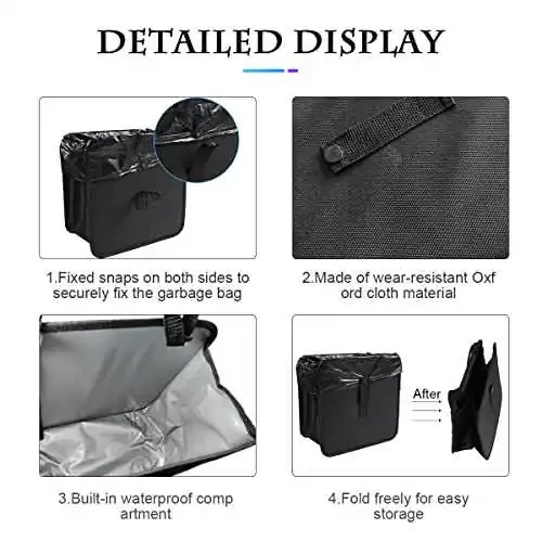 Fekey&JF Katlanadigan Avtomobil Axlat Qutisi har qanday mashinada foydalanish uchun idealdir. Amaliy osilgan dizayni tufayli uni orqa o'rindiqning boshlig'iga yoki eshik tutqichiga osongina osib qo'yish mumkin. Katlanadigan xususiyati tufayli ishlatilmagan paytlarda minimal joy egallaydi va osongina saqlanadi. Avtomobil axlat qutisi bardoshli va suv o'tkazmaydigan materialdan tayyorlangan. Oqib ketmaydigan dizayni shuningdek, axlatning to'kilib ketishini oldini oladi, bu sizga mashina ichida toza va tartibli muhit yaratishga yordam beradi.