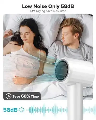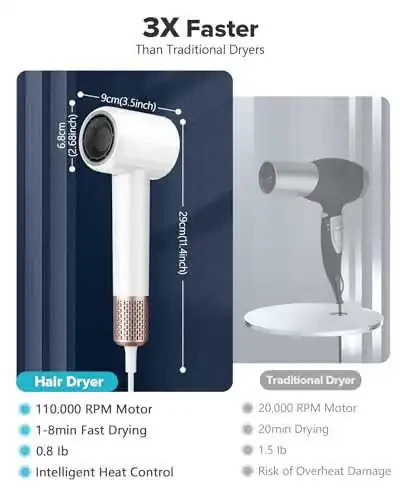 Fentgo Yüksek Hızlı İyonik Saç Kurutma Makinesi Difüzörlü, Profesyonel Üflemeli Kurutucu 110.000 RPM Fırçasız Motor Hızlı Kurutma için, 1500W 4Sıcaklık /2Hız, Kadınlar İçin Ev Seyahati için Termo Kontrollü Saç Kurutma Makinesi (Beyaz)