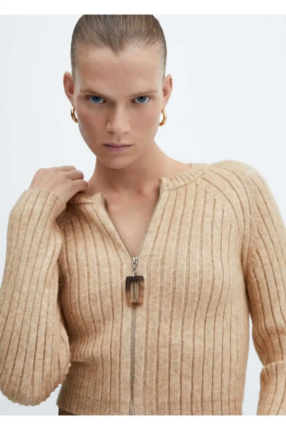 **Zipper Detail Ribbed Cardigan from Trendyol**