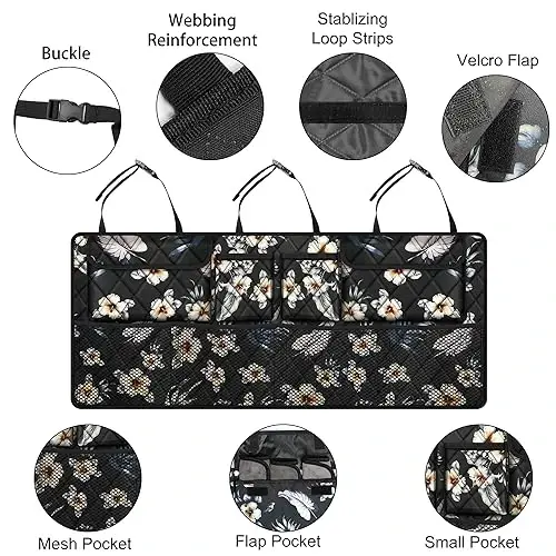 Aracınızın bagajında düzeni sağlamak ve eşyalarınızı güvenle taşımak için ideal çözüm: Femuar Car Trunk Organizer! Bu geniş kapasiteli arka koltuk bagaj düzenleyicisi (42"*18"), katlanabilir tasarımı ve 8 kullanışlı cebi ile Hibiscus deseniyle aracınıza şıklık katarken, pratikliği de beraberinde getiriyor. Artık dağınık bagajlara son! Femuar Car Trunk Organizer ile eşyalarınızı düzenli bir şekilde yerleştirebilir, aradığınızı kolayca bulabilir ve sürüş keyfinizi artırabilirsiniz. Su geçirmez malzemesi sayesinde eşyalarınızı güvenle koruyacak ve kolayca temizlenebileceksiniz. Güçlendirilmiş dikişleri ve dayanıklı malzemeleri sayesinde ağır yükleri bile rahatlıkla taşıyabilecek, uzun ömürlü bir kullanım deneyimi yaşayacaksınız. Genişletilmiş boyutu ile daha fazla depolama alanı sunan bu düzenleyici, dört kumaş cebi ve dört file cebi ile farklı boyutlardaki eşyalarınız için ideal çözümler sunar. İster market alışverişi yapın, ister seyahate çıkın, Femuar Car Trunk Organizer ile her zaman hazırlıklısınız! Sağlam ve ayarlanabilir tokaları sayesinde aracınıza kolayca monte edebilir, güvenli bir şekilde sabitleyebilirsiniz. Ürünün arkasındaki cırt cırt bantları, halı kaplı yüzeylere mükemmel tutunma sağlayarak sürüş sırasında oluşabilecek kaymaları önler. Ancak, lütfen dikkat: bu cırt cırt bantları deri, parlak veya süet yüzeyler için uygun değildir. Femuar Car Trunk Organizer ile aracınızın bagajını düzenleyin, sürüş keyfinizi artırın!