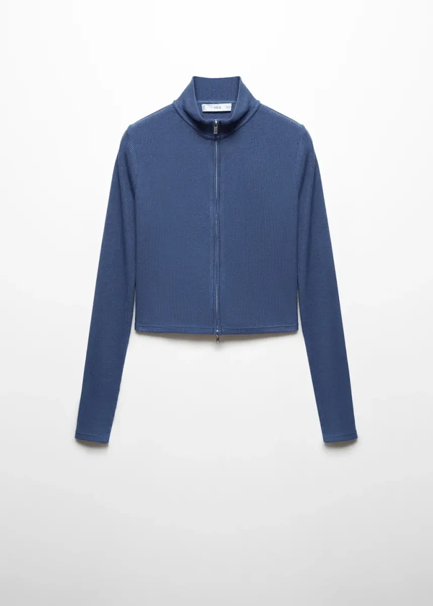 Fermuarlı yüksek yaka hırka - Mavi