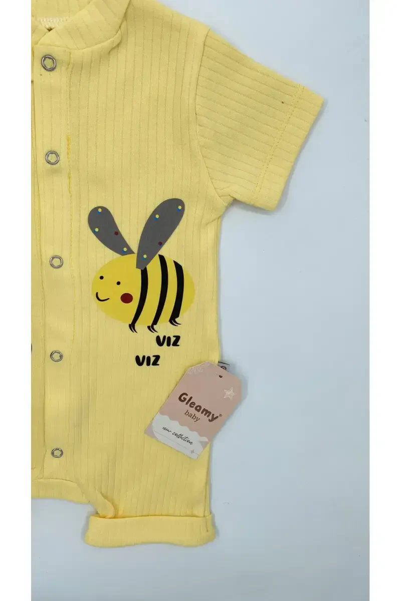 Çıtçıtlı body, bebek body, pamuklu body, kısa kollu tulum, şortlu tulum, bebek tulum, sarı tulum, arı desenli tulum, çıtçıtlı tasarım, bebek giyim