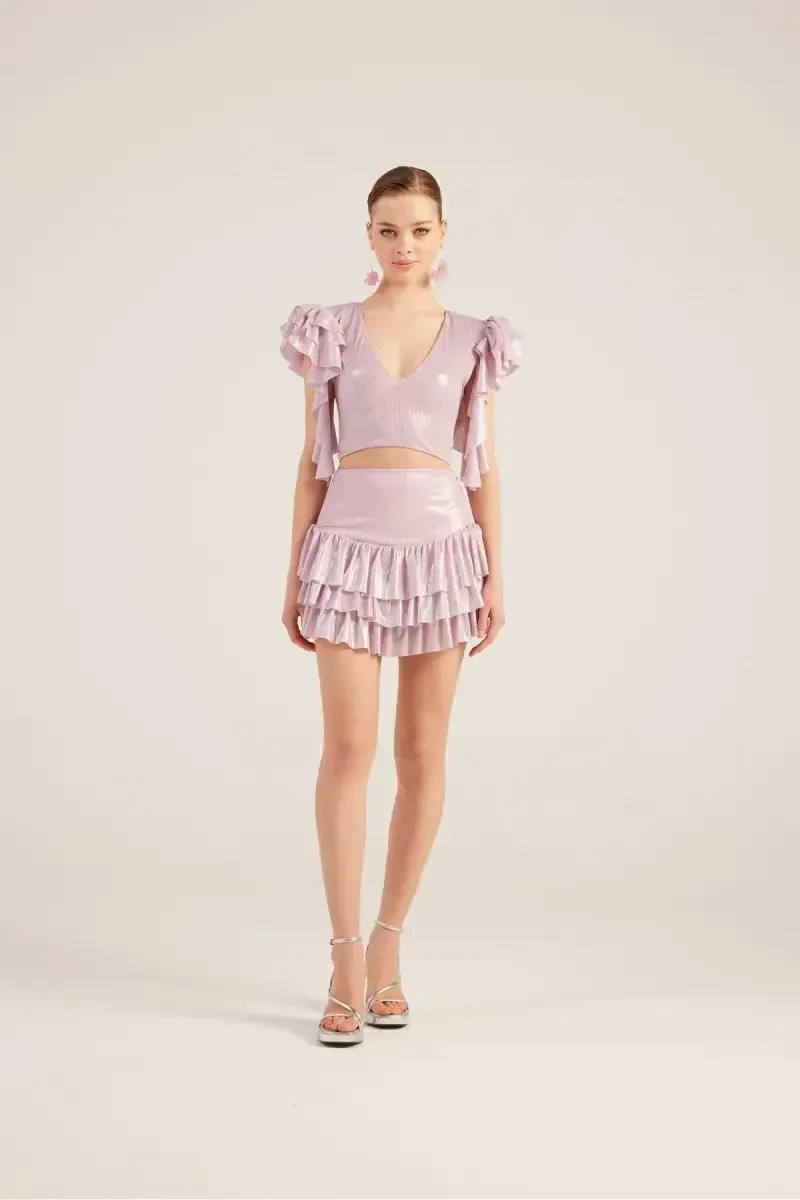 Fırfır detallari bilan etek bluz Nana to'plami pushti, nafislik va qulaylikni birlashtirgan, o'ziga xos dizayni bilan ajralib turadigan kombinatsiya. Ushbu ko'zni qamashtiruvchi to'plam, yorqin matosi, fırfır detallari va zamonaviy kesimi bilan har qanday muhitda o'zingizni ajralib turishingizga yordam beradi. Xoh maxsus tadbirda, xoh kundalik foydalanishda ushbu to'plam bilan o'z uslubingizni namoyish etishingiz mumkin.To'plamning eng diqqatga sazovor qismi - bu qo'llari fırfırlı va orqasi ochiq crop bluz. Ushbu bluz feminen detallari va zamonaviy dizayni bilan ajralib turadi. Yorqin mato bluzani yanada nafis qiladi, fırfır detallari esa harakatli va qiziqarli muhit yaratadi. Orqa ochiq dizayni esa jasur va dadil ko'rinish beradi.To'plamning yana bir qismi bo'lgan fırfırlı mini yubka esa bluz bilan mukammal uyg'unlikda. Yubkaning fırfır detallari to'plamga romantik va nafis bir teginish qo'shadi. Mini uzunligi oyoqlaringizni ta'kidlasa, qulay kesimi kun bo'yi qulay foydalanishni ta'minlaydi.Fırfır detallari bilan etek bluz Nana to'plami pushti, yuqori sifatli materiallardan ishlab chiqarilgan va puxta ishlov berilgan. Shu sababli uzoq muddatli va bardoshli foydalanishni ta'minlaydi. Mato yorqinligi va fırfır detallarining jonliligi to'plamning har doim yangi va nafis ko'rinishini ta'minlaydi.Ushbu to'plamni turli aksessuarlar bilan birlashtirib, o'z uslubingizni aks ettirishingiz mumkin. Baland poshnali oyoq kiyimlari bilan yanada nafis ko'rinishga erishishingiz, sandallar bilan yanada qulay kombinatsiya yaratishingiz mumkin. Zargarlik buyumlari va sumkani ham o'z uslubingizga mos ravishda tanlab, kombinatsiyangizni to'ldirishingiz mumkin.Fırfır detallari bilan etek bluz Nana to'plami pushti, garderobingizning ajralmas qismlaridan biri bo'ladi. Ham nafis, ham qulay bo'lgan ushbu to'plam bilan har doim o'zingizni maxsus his qilasiz. Mahsulotning Holly Lolly tomonidan yuborilishini va kampaniya narxida sotilish uchun cheklangan miqdorda mavjudligini unutmang. Buyurtma berishdan oldin rasmlardagi o'lcham jadvalini ko'rib chiqib, sizga eng mos o'lchamni tanlashingiz mumkin. 15 kun ichida bepul qaytarish imkoniyati ham mavjud. Ushbu imkoniyatni qo'ldan boy bermang va Fırfır Detallari bilan etek bluz Nana to'plami pushti bilan o'z uslubingizni yangilang! Unutmang, ushbu mahsulotdan ko'pi bilan 11 dona buyurtma berishingiz mumkin.