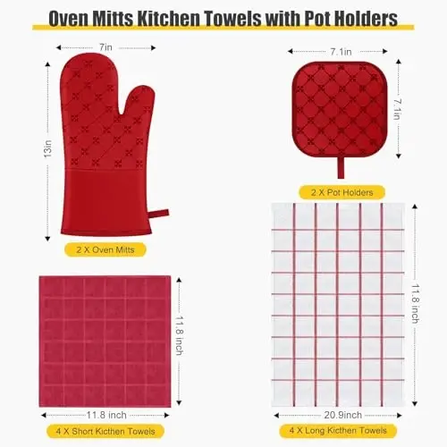 Mutfakta geçirdiğiniz zamanı daha keyifli ve güvenli hale getirecek olan 12 parçalık Oven Mitts Kitchen Towels Dishcloths with Pot Holders Set ile tanışın! Bu set, yemek pişirme, fırınlama ve ızgara gibi tüm mutfak aktivitelerinizde size eşlik edecek eksiksiz bir çözümdür. Her bir parça, en yüksek kalite standartlarına uygun olarak üretilmiş olup, uzun ömürlü kullanım ve üstün performans sunar. Setin içeriğinde bulunan fırın eldivenleri ve tutacaklar, 500 dereceye kadar ısıya dayanıklı özel malzemeden üretilmiştir. Bu sayede, fırından sıcak tepsileri veya ocaktan kaynar tencereleri güvenle tutabilir, yanma riskini minimuma indirebilirsiniz. Kaymaz silikon yüzeyleri sayesinde, eşyaları sıkıca kavrayabilir, olası kazaların önüne geçebilirsiniz. Sadece güvenliği değil, aynı zamanda konforu da ön planda tutan bu eldivenler ve tutacaklar, mutfakta geçirdiğiniz süreyi daha keyifli hale getirecektir.Set içerisinde yer alan mutfak havluları ve bulaşık bezleri ise, yüksek emiciliğe sahip pamuklu kumaştan üretilmiştir. Bu sayede, tezgah üzerindeki sıvıları hızla temizleyebilir, bulaşıkları kolayca kurulayabilir ve mutfağınızın her zaman temiz ve düzenli kalmasını sağlayabilirsiniz. Havluların ve bezlerin dayanıklı yapısı, sık yıkamalara karşı direnç gösterir ve uzun süreli kullanım imkanı sunar. Kırmızı renk seçeneği, mutfağınıza canlılık katarken, diğer mutfak eşyalarınızla kolayca uyum sağlar.Oven Mitts Kitchen Towels Dishcloths with Pot Holders Set, sadece mutfak gereksinimlerinizi karşılamakla kalmaz, aynı zamanda mutfağınıza şıklık ve düzen getirir. İster kendiniz için alın, ister sevdiklerinize hediye edin, bu set her mutfakta olması gereken vazgeçilmez bir parçadır. Yemek pişirme deneyiminizi bir üst seviyeye taşımak ve mutfakta geçirdiğiniz zamanı daha keyifli hale getirmek için bu özel seti kaçırmayın. Her bir parça, özenle tasarlanmış ve üretilmiş olup, mutfaktaki günlük işlerinizi kolaylaştırmak için idealdir. Fırın eldivenlerinin ve tutacakların ısıya dayanıklılığı, güvenliğinizi sağlarken, havluların ve bezlerin emiciliği, temizlik işlerinizi kolaylaştırır. Bu set, mutfakta geçirdiğiniz her anı daha verimli ve keyifli hale getirmek için mükemmel bir seçimdir. Mutfak gereçlerinizi yenilemek veya sevdiklerinize anlamlı bir hediye vermek istiyorsanız, Oven Mitts Kitchen Towels Dishcloths with Pot Holders Set tam size göre!