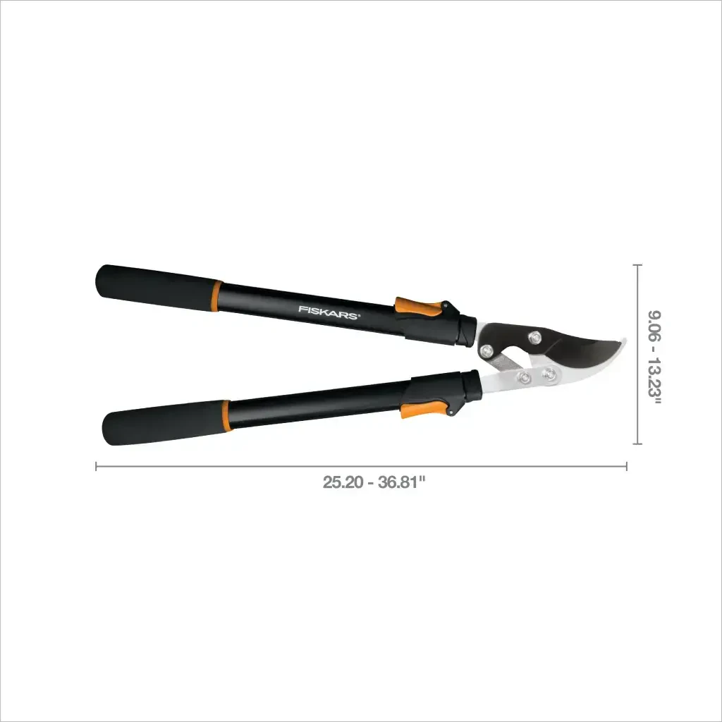 Designed to effortlessly handle your pruning tasks in the garden, the Fiskars Power-Lever Telescopic Lopper is an extendable pruning shear that provides superior cutting power and reach. This innovative tool is equipped with compound lever technology, which offers twice the cutting power compared to traditional single-pivot loppers. Thanks to its telescopic handles, adjustable between 25" and 37", you can prune comfortably and safely without straining or reaching to reach high branches. Made from high-quality materials, the Fiskars Power-Lever Telescopic Lopper offers long-lasting use and durability. The fully hardened, precision-ground steel blade stays sharp for a long time, while the rust-resistant, low-friction coating makes every cutting operation even easier. Durable steel construction and handles with Softgrip touchpoints provide a secure and comfortable grip. Easily cutting branches up to 1-3/4" in diameter, this powerful lopper is an ideal solution for all your pruning needs in the garden. Allowing you to easily handle heavy-duty tasks, this tool saves time and energy. Backed by Fiskars' lifetime warranty, this product is an investment you can rely on for years to come. A perfect choice for professional gardeners or hobbyists, the Fiskars Power-Lever Telescopic Lopper is an indispensable tool for the maintenance of your garden. Easily reach high branches, effortlessly cut thick branches, and reveal the beauty of your garden. Thanks to its ergonomic design, it does not tire your wrists even during prolonged use and offers a comfortable working experience. Transform your pruning tasks into a pleasure with Fiskars quality and innovative technology.