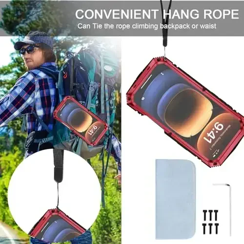 Meet the "fit for iPhone 16 Pro Case," specially designed for your iPhone 16 Pro 6.3-inch (2024) model, offering a combination of superior protection and stylish design! This case is built with military-grade durability to keep your phone safe from the rigors and adventures of daily use. Thanks to its hard metal bumper, soft silicone inner layer, and durable metal back surface, it fully protects your phone against impacts, drops, and scratches. This three-layer structure, combined with unique locking technology, is tested against drops up to 20 feet, so your phone is always safe.The case's integrated 9H tempered glass screen protector and camera lens protector provide 360-degree full-body protection by protecting your screen and camera from scratches and impacts. Its special dust and sandproof design prevents your phone from being damaged during running, mountaineering, camping, or other outdoor sports.Thanks to the integrated aluminum stand, you can watch your favorite programs on a horizontal screen whenever and wherever you want, freeing your hands. This multi-functional case saves you the need to pay separately for a screen protector, camera protector, and stand, thus protecting your budget. The box includes spare screws, wrench, dust cloth, and lanyard.Offering a perfect fit for your iPhone 16 Pro 6.3-inch device, this case stands out with its military style and superior protection features. If you want to protect the elegance of your phone while maximizing its security, the "fit for iPhone 16 Pro Case" is for you! Enjoy using your phone safely. Thanks to this case, you can protect your phone against all kinds of dangers you may encounter in daily life and ensure long-lasting use. Choose this case to protect the value of your phone and give it the care it deserves. Remember, your phone is not just a communication tool for you, but also a reflection of your personality. Therefore, meet the "fit for iPhone 16 Pro Case" to protect it in the best way and reflect your style.
