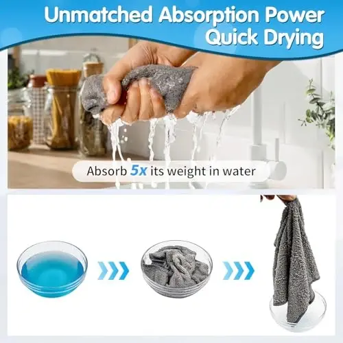 Unmatched Softness and Scratch-Free Cleaning: Our microfiber cleaning cloth is incredibly soft and gentle, ensuring a scratch-free cleaning experience. It effortlessly removes microscopic dust particles and absorbs water instantly, leaving no lint or streaks behind. It's ideal for cleaning and dusting household appliances, kitchen, cars, bathtubs, windows, glass, mirrors, and more, giving your home a fresh, spotless look. HIGHLY ABSORBENT & WIDE APPLICATIONS: These 16×12 inch microfiber cleaning cloths have outstanding water absorption abilities, surpassing that of cotton cloths, ensuring faster drying. Additionally, the larger and thicker design allows you to cover a wider surface area while cleaning, making it more efficient and effortless. Reusable and Long-Lasting: Crafted with high-quality stitching and reinforced edges, our microfiber cloth is built to last. It resists fraying and maintains its performance even after multiple uses. Its lightweight design and exceptional water absorption make it a reliable choice for everyday cleaning, saving you money on disposable alternatives. Enjoy the convenience and effectiveness of our cloth for years to come. Powerful cleaning performance: These premium microfiber towels are not only perfect for dishwashing, but also effortlessly remove grease and particles from microwaves, plates, pots, and pans. Moreover, they work wonders as dusters, effortlessly removing fingerprints and dirt from silverware and glassware, leaving your home spotless. Use and Care: Our cleaning cloth is easy to use and maintain. Simply hand wash or machine wash it with warm water, separately from other garments. Avoid using fabric softeners, bleach, or ironing. After use, allow it to air dry for optimal results.
