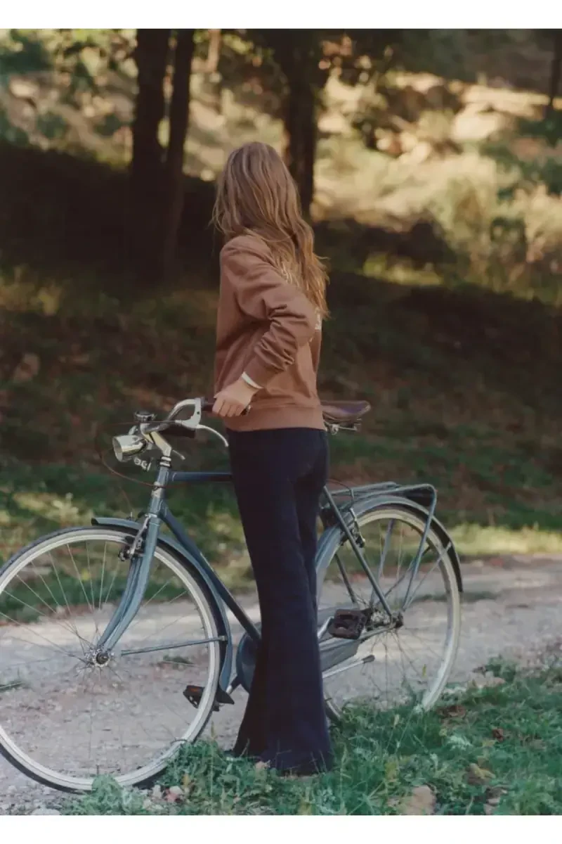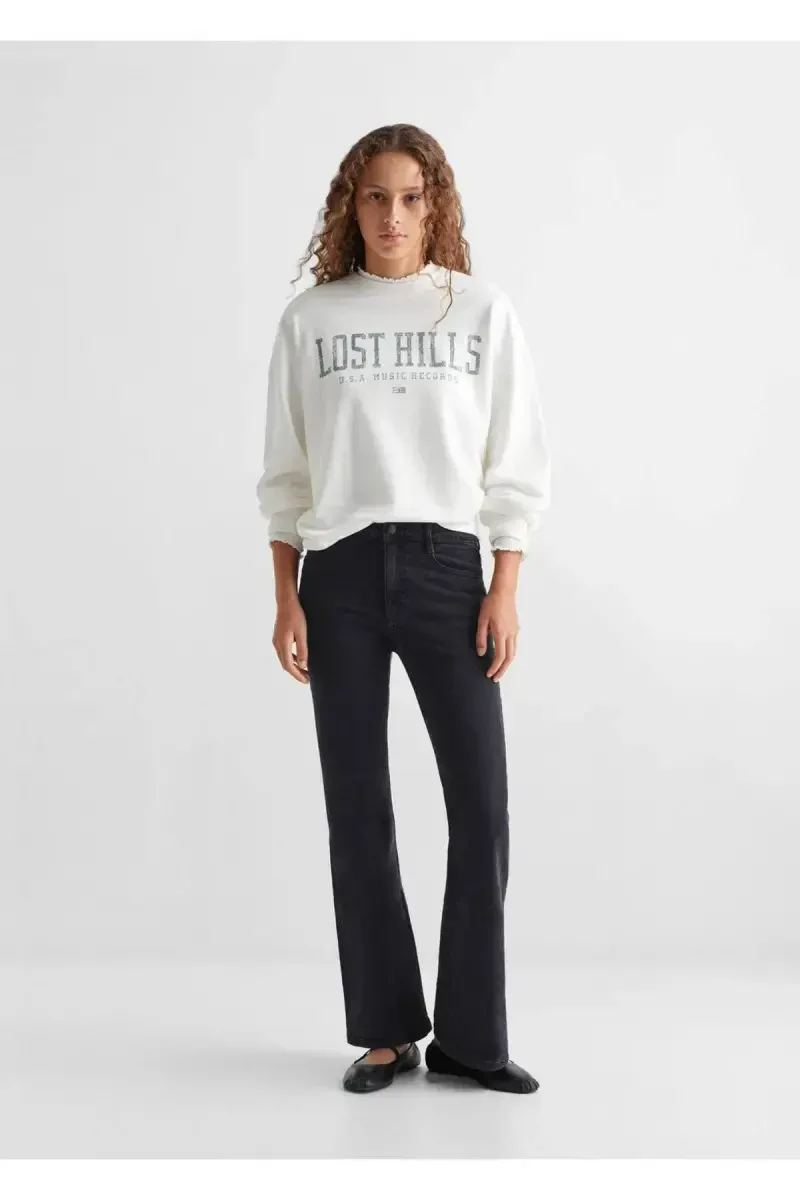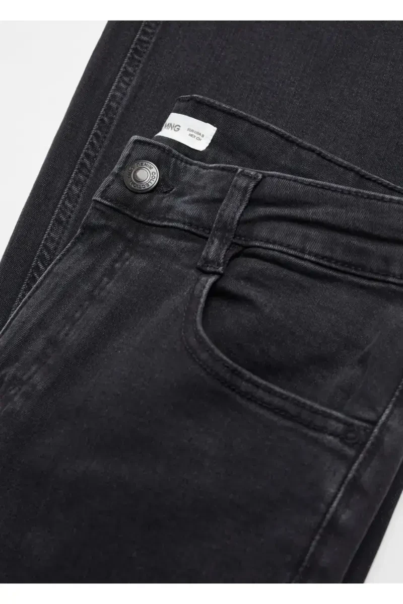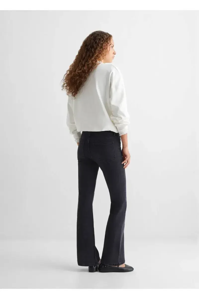 Flared jean pants, high waist, bell bottom, black color, 100% cotton.