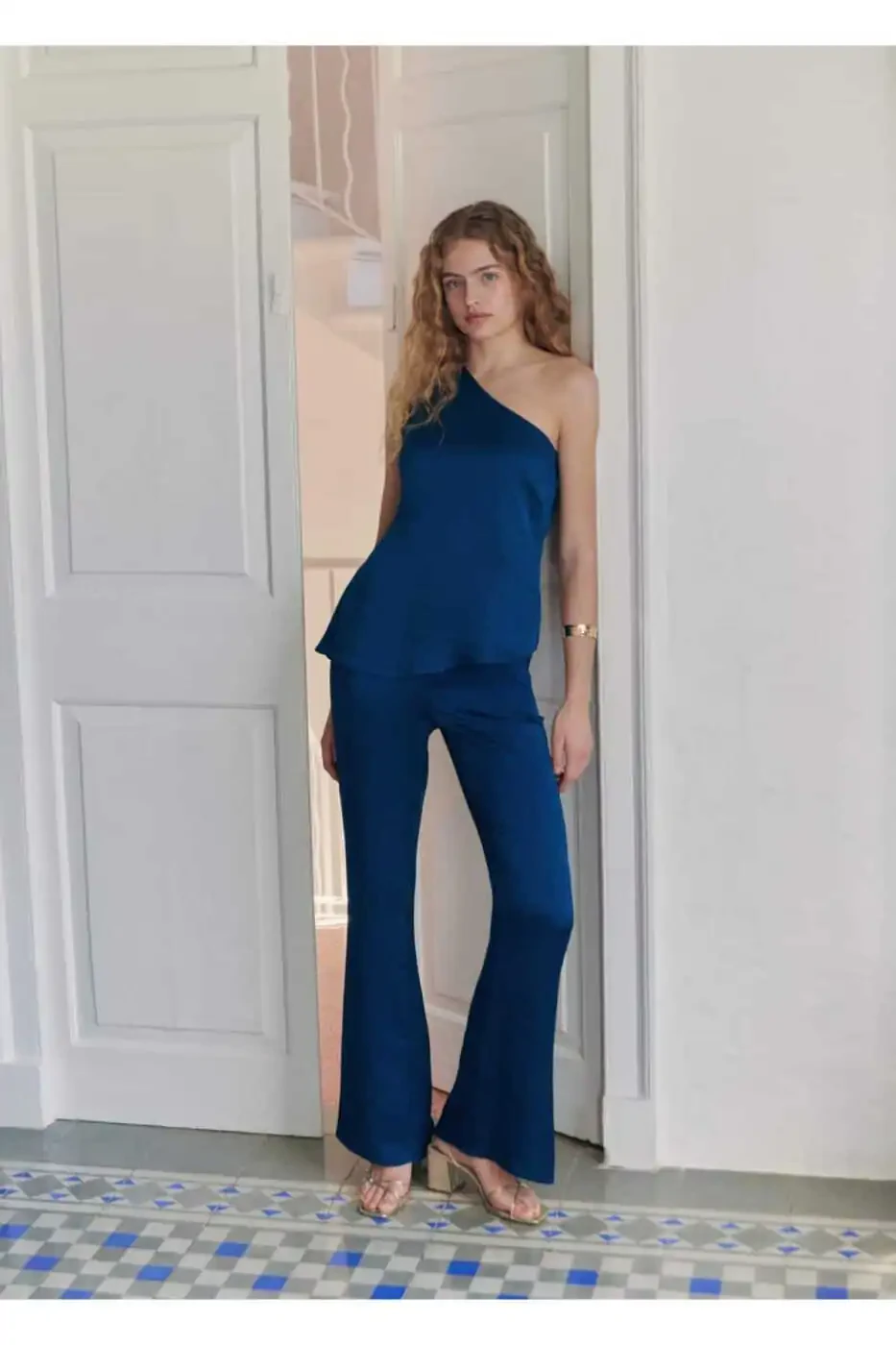 Spanish flare pants with a design that appeals to every age group have a wide range of users. They offer a modern and stylish look with their flared silhouette. Satin weave type provides a smooth and shiny surface. Normal waist cut provides comfortable use. It can be easily cleaned in accordance with Type 1 washing instructions. While preserving the classic pants cut with regular leg and leg type, it offers a comfortable experience. The fabric type stands out with its durability and flexibility. Its design, which is special for the young age group, emphasizes a dynamic and trendy style.