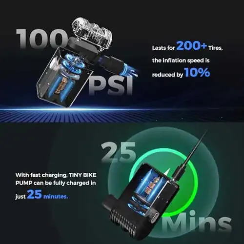 FLEXTAILGEAR Tiny Velosiped Nasosi bilan velosiped sayohatlaringizda endi shishirish muammosi yo'q! Kompakt hajmi va engil vazni bilan sumkangizda osongina ko'tariladigan bu elektr nasos Type-C zaryadlash tufayli har doim tayyor! 100PSI gacha bosim yaratishga qodir Tiny Nasos, ham Schrader, ham Presta klapanlari bilan mos keladi. Yo'l velosipedi, tog' velosipedi yoki MTB bo'lsin, har qanday velosipedingizni darhol shishiring!