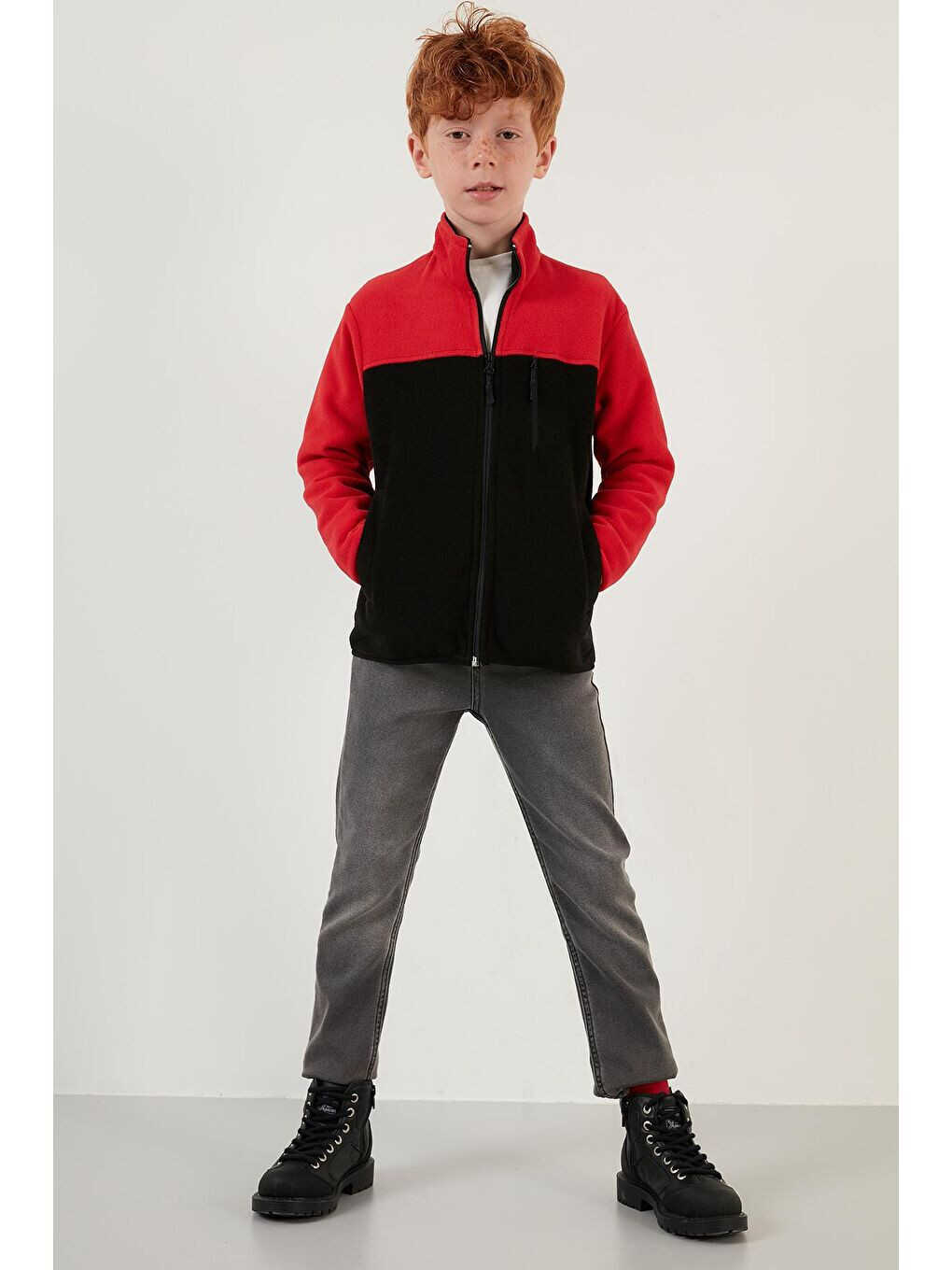 Мягкий флис с молнией, цветными блоками, стоячим воротником и карманами 5905001