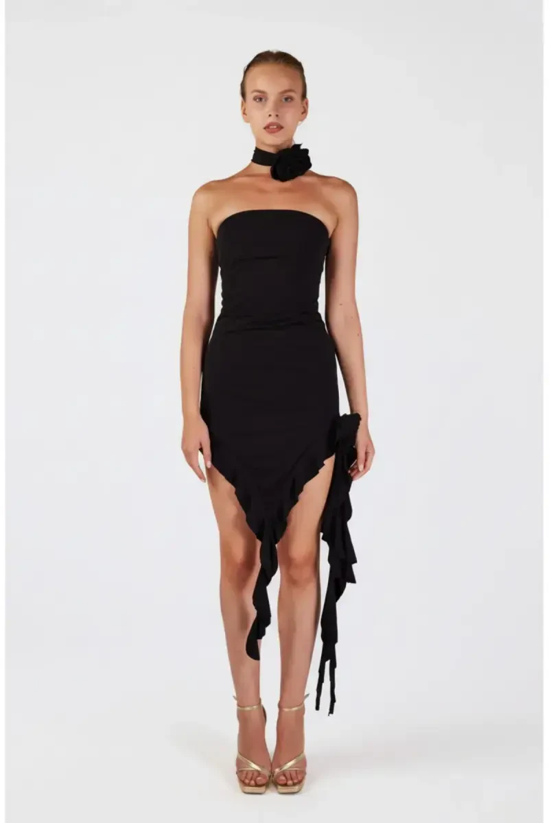 The Rosanna Dress Black with Floral Detail and Ruffles features a unique design that combines elegance and sophistication. This dress is adorned with details that will make you stand out in any setting. The standard sleeve design allows you to move comfortably throughout the day, while the plain pattern makes it easy to combine with different accessories and shoes. As part of the Business collection, this dress is a candidate to be an indispensable part of your wardrobe, as it can be preferred both in business life and in daily use. Ruffle details add a feminine touch to the dress, while the V-neck cut elegantly emphasizes the décolleté. The woven fabric structure offers long-lasting use and all-day comfort. The standard length helps every woman look stylish by adapting to different body types. This dress, which you can easily prefer in casual environments, is ideal for daily use. The sleeveless sleeve length offers a cool and comfortable use, especially in summer months. The A-line silhouette gently wraps the body lines, creating a feminine stance, while appealing to a wide audience with its design that appeals to all age groups. The material composition of 92% polyester and 8% elastane gives the dress flexibility and durability, while ensuring that it maintains its shape for a long time. Floral details add a romantic air to the dress, while the ruffled design offers a lively and dynamic look. This dress allows you to reflect your style in any setting, from special invitations to daily meetings. Elegant details combined with the nobility of black always make you look stylish and well-groomed. Feel special and let your style speak with the Rosanna Dress.