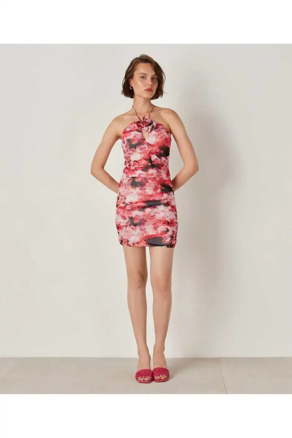 The perfect choice for carrying summer's energy on you, the Floral Printed Mini Dress combines style and comfort. This dress, which draws attention with its vibrant colors and elegant floral patterns, will make you stand out in every environment. Made from lightweight and breathable fabric, the dress offers all-day comfort. Its mini length elongates your legs, adding extra charm to your style.