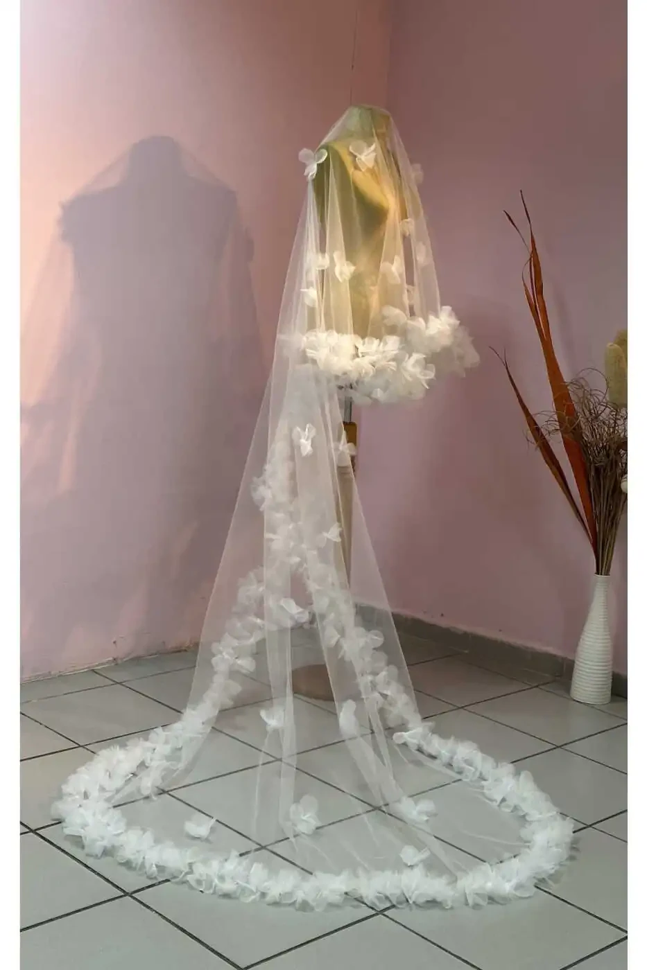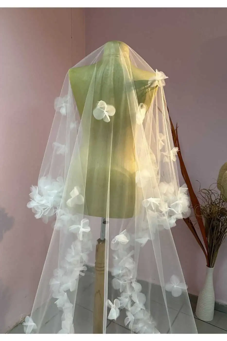 - Classic Floral Veils: Ideal for a traditional and elegant look. Delicate floral motifs will create an elegant contrast on a simple wedding dress.