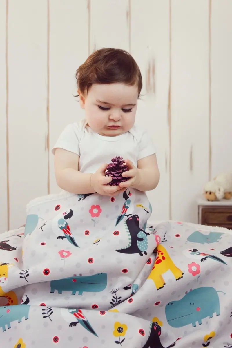 Fluffy Bebek Battaniyesi 80x100 Cm Animal Kundak Puset Çift Taraflı Koyun Tüyü Battaniye 100x80-Çok Renkli