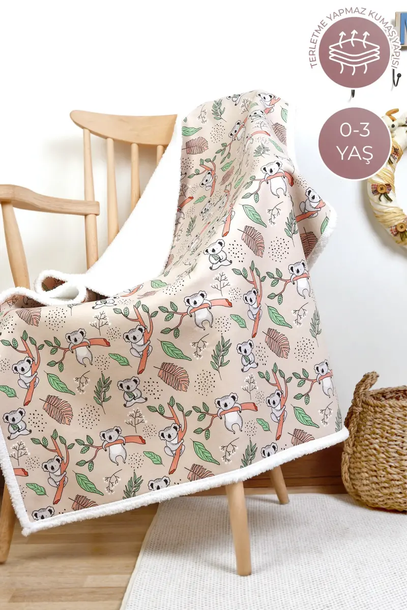 Fluffy Bebek Battaniyesi 80x100 Cm Koala Kundak Puset Çift Taraflı Koyun Tüyü Battaniye 100x80-Açık Toprak