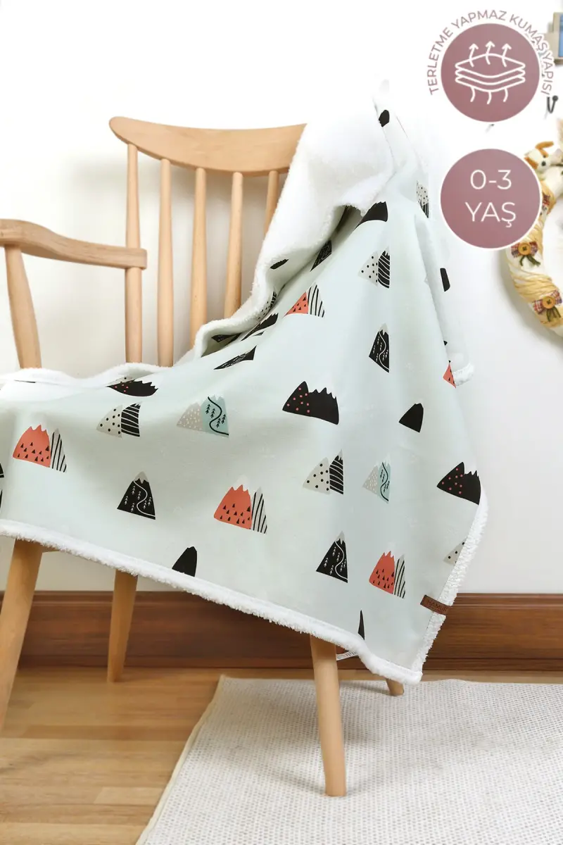 Fluffy Bebek Battaniyesi 80x100 Cm Poyraz Kundak Puset Çift Taraflı Koyun Tüyü Battaniye 100x80-Mint