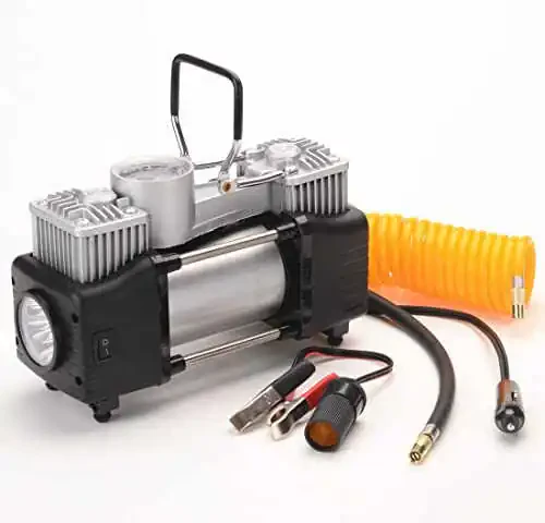 **FLZOSPER 6 Parçalı Metal DC 12V Hava Kompresörü Kiti, Pompa Lastik Şişirme Aparatı Ağır Hizmet Çift Silindirler, 150PSI Adaptörlü Lastik Hava Pompası Otomobil, Kamyon, SUV Lastikleri, Şişme Bot, Hava Yatağı vb. için Gümüş**