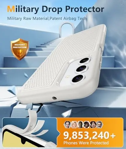 FNTCASE for Galaxy A15-5G Phone Case - Samsung A15 5G Military Grade Drop Protection, 14ft Drop Tested, Screen Protector Included, Anti-Slip Textured, TPU+PC Dual Layer Shockproof Cover (Off-White)