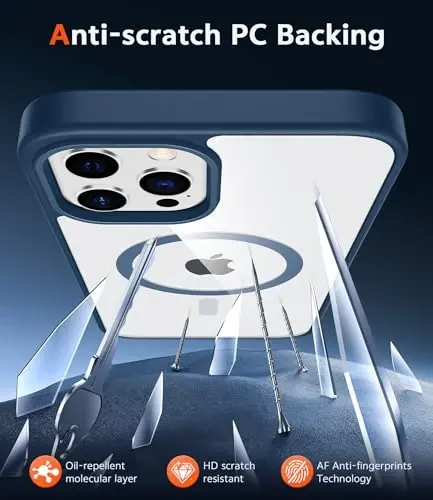 FNTCASE for iPhone 12 Pro-Max Case: Clear Magnetic Phone Cases Compatible with Magsafe Slim Anti Yellowing Military Grade Drop Protection Rugged Protective Transparent Cell Phone Cover (B-Blue)
