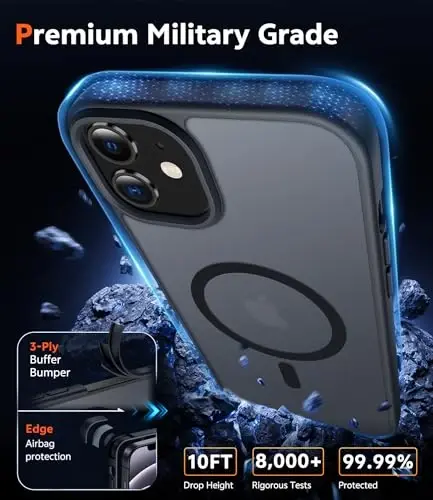 Strong Magnetic Attraction: The iPhone 13 Mini/12 Mini magnetic case has built-in 38 super N52 magnets. Its magnetic attraction reaches 2400 gf, which is almost 7X stronger than ordinary, therefore it won't fall off no matter how it shakes when you are charging Matte Texture & Excellent Touch Feel: The iPhone 13 Mini/12 Mini case uses high-grade matte TPU and PC translucent material, refined and elegant beauty without obscuring the logo. The frosted surface provides you with a comfortable hand feel and the nano-antioxidant layer can effectively prevent stains and scratches 10FT Military Grade Protection: Passed Military Drop Tested up to 10FT. This iPhone 13 Mini/12 Mini case backplane is made with rigid polycarbonate and flexible shockproof TPU bumpers around the edge and features 4 built-in corner Airbags to absorb impact, which can prevent your Phone from accidental drops, bumps, and scratches Screen & Camera Raised Edges: The tiny design of 2.5 mm lips over the camera, 1.5 mm bezels over the screen, and 0.5 mm raised corner lips on the back provides extra and comprehensive protection, can minimize and reduce scratches Compatibility: Only for iPhone 13 Mini/12 Mini Phone Case, 5.4 inches, 2020. Precise cut and design allow easy access to all ports, buttons, cameras, sensors, and other features. The case can totally achieve a great grip feeling also stay secure and clean. The ultra-thin minimalist design does not add bulk and is easy to carry