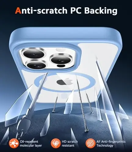 FNTCASE for iPhone 13 Pro-Max Case: Clear Magnetic Phone Cases Compatible with Magsafe Slim Anti Yellowing Military Grade Drop Protection Rugged Transparent Cell Phone Cover (B-Sierra Blue)