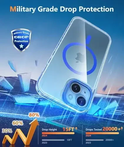 FNTCASE magnetic ring transparent case for iPhone 15 Plus is a superior solution that protects your phone from drops, bumps, and scratches. This case, which has passed military-grade drop tests, stands out with its durable structure and stylish design. Made from Bayer's ultra-clear TPU and PC material, it is resistant to yellowing over time and preserves your phone's original color for a long time. Thanks to the built-in 38 super N52 magnets, it is perfectly compatible with wireless chargers, wallets, and in-car phone holders. Its strong magnetic pull prevents it from being affected by vibrations during charging. With raised edges and corner airbags, it protects the screen and camera lens from scratches, while its slim and lightweight design does not add extra weight to your phone. With FNTCASE, your iPhone 15 Plus is safe and stylish!