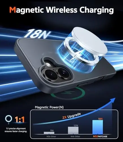COMPATIBILITY: This case is only for 6.1 inch iPhone 16, not for any other phone model, please check your phone model before purchase. Strong Magnetic AttacModazoneent: For magnetic chargers and other Qi wireless chargers, no signal interference. Our iPhone 16 case has extremely strong magnetic attraction, built-in 38 super strong N52 magnets, with a magnetic force of up to 2400gf, almost 7 times the normal magnetic force, charging is solid and does not fall off, realizing a fast and convenient wireless charging experience Silicone Texture & Superior Feel: FNTCASE iPhone 16 phone case is made of high quality slim silicone material, exquisite and elegant beauty. The silicone surface provides users with an excellent grip. In addition, this case also features advanced nano antioxidant layer technology that protects against fingerprints, smudges and scratches, keeping your phone as good as new Full Camera Protection: The tiny design of 2.5mm lip above the camera, 1.5mm bezel above the screen and 0.5mm raised lip on the back provides extra full protection for your phone, minimizing and reducing scratches and bumps to your phone even if the iPhone 16 phone case is dropped. Precision cut edges and full wrap-around lens design provide all-around security for your iPhone 16 camera lens Military Grade Protection: The iPhone 16 case has excellent protection to disperse severe shocks. The rugged PC material further absorbs the remaining impact, providing double protection for your phone