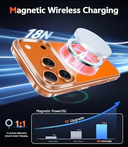 Strong Magnetic Attraction: Compatible for Magnetic chargers and other Qi Wireless chargers without signal influence. The iPhone 17 Pro magnetic case has built-in 38 super N52 magnets. Its magnetic attraction reaches 2400 gf Crystal Clear & Never Yellow: Using high-grade Bayer's ultra-clear TPU and PC material, allowing you to admire the original sublime beauty for iPhone 17 Pro while won't get oily when used. The Nano antioxidant layer effectively resists stains and sweat 10FT Military Grade Protection: Passed Military Drop Tested up to 10 FT. This iPhone 17 Pro clear case backplane is made with rigid polycarbonate and flexible shockproof TPU bumpers around the edge and features 4 built-in corner Airbags to absorb impact. The rectangular back panel perfectly aligns with modular design concept for the iPhone 17 Pro Raised Camera & Screen Protection: The tiny design of 2.5 mm lips over the camera, 1.5 mm bezels over the screen, and 0.5 mm raised corner lips on the back provides extra and comprehensive protection, even if the phone is dropped, can minimize and reduce scratches and bumps on the phone. Molded strictly to the original phone, all ports, lenses, and side button openings have been measured and calibrated countless times, and each button is sensitive and easily accessible Compatibility & Secure Grip: This clear case is only designed for iPhone 17 Pro 6.3 inch. Precise cut and design allow easy access to all ports, buttons, cameras, sensors, and other features. The clear case can totally achieve a great grip feeling