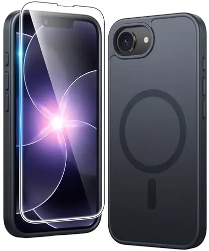 FNTCASE for iPhone 17e & iPhone 16e Case: [Compatible with MagSafe] [Screen Protector] Matte Textured Military Grade Drop Protection Silicone Slim Rugged Shockproof Phone Cover Black